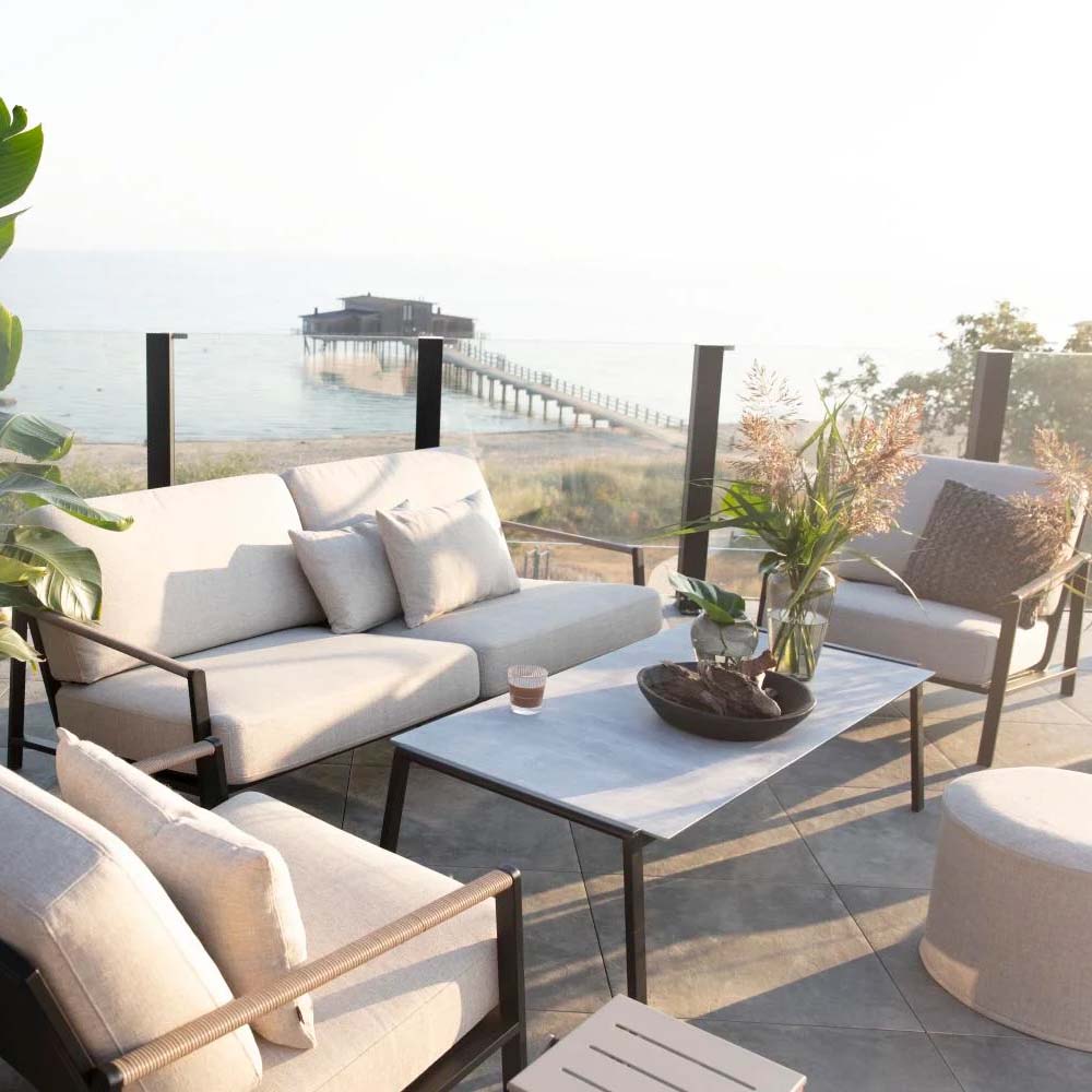 En lounge- eller hörnsoffa har ofta en lite lägre och djupare formgivning och kommer ofta i färdigt paket med tillhörande dynor. En härlig loungegrupp inbjuder till långa bekväma och avkopplande stunder. En loungesoffa är dock ofta lite större till modellen och kräver därför en större uteplats. Viktigt att tänka på är också att skydda dynorna vid regn.