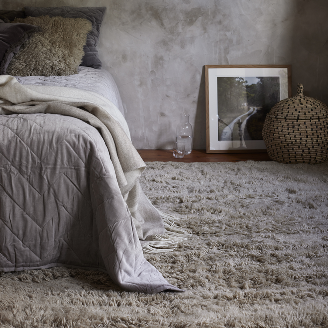 För en mer ombonad känsla i sovrummet är det perfekt med en matta under sängen. Känslan av att sätta ned fötterna på något mjukt ger en skön start på dagen. Placera mattan under ca 2/3 av sängen. Finns det plats i sovrummet rekommenderar vi den stora mattan så att du får ännu mer matta att sätta ner fötterna på.