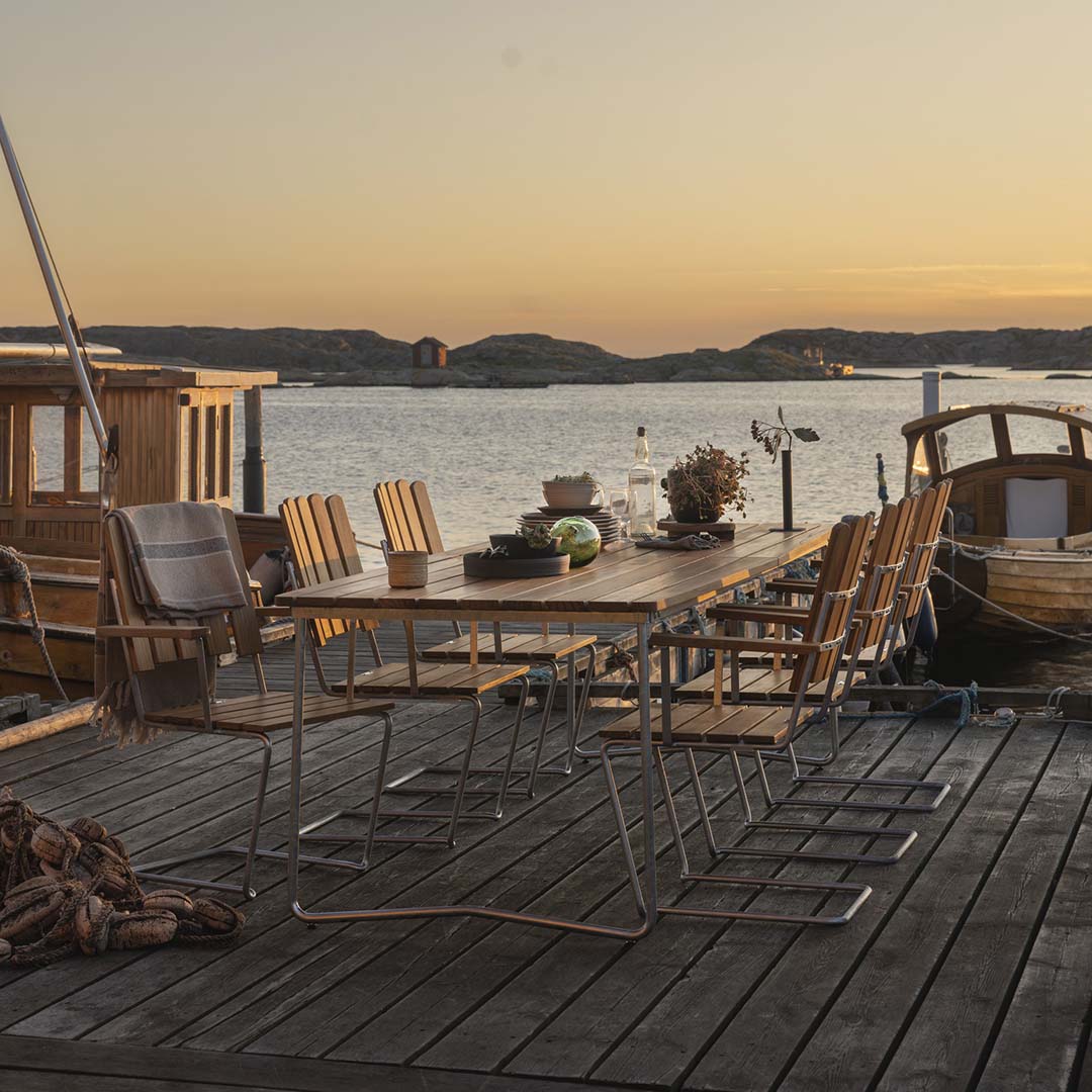 *Teak är en klassiker i svenska trädgårdar där graden av underhåll kan anpassas efter eget engagemang. Teak i sig behöver inget underhåll och om man inte oljar det får träet en vacker gråaktig patina med tiden.